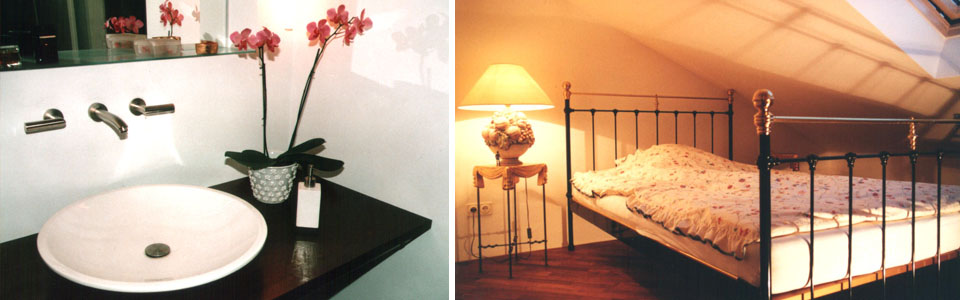 Das relativ flache Dach machte die Nutzung schwierig und stellte uns vor genehmigungstechnische Schwierigkeiten. Mit einiger Hatrnäckigkeit und überzeugenden Darstellungen war es möglich eine gläserne Gaube in das Dach zu setzen, die aus dem ehemals düsteren Dachboden eine attraktive Wohnung mitten im Zentrum der Stadt macht.