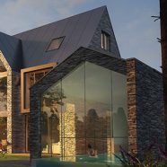 Entwurfsplanung im Rahmen eines geladenen Wettbewerbs Bei diesem Wettbewerbsbeitrag für eine luxuriöse Villa in Grünwald auf einem knapp 2.000 m² großen Grundstück sollte es darum gehen, trotz sehr enger Vorgaben des Grünwalder Bebauungsplanes möglichst viel Nutzfläche mit einem anspruchsvollen Raumkonzept zu erzielen. Ergebnis ist ein Gebäude mit zwei Vollgeschossen mit Split-Level, einer zentralen Wendeltreppe mit Glasaufzug im Treppenauge, zwei Dachebenen mit sehr spitzem Dach, einem separaten Schwimmbad, das unterirdisch mit dem Wohnhaus über einen Wellnessbereich verbunden ist und zwei...